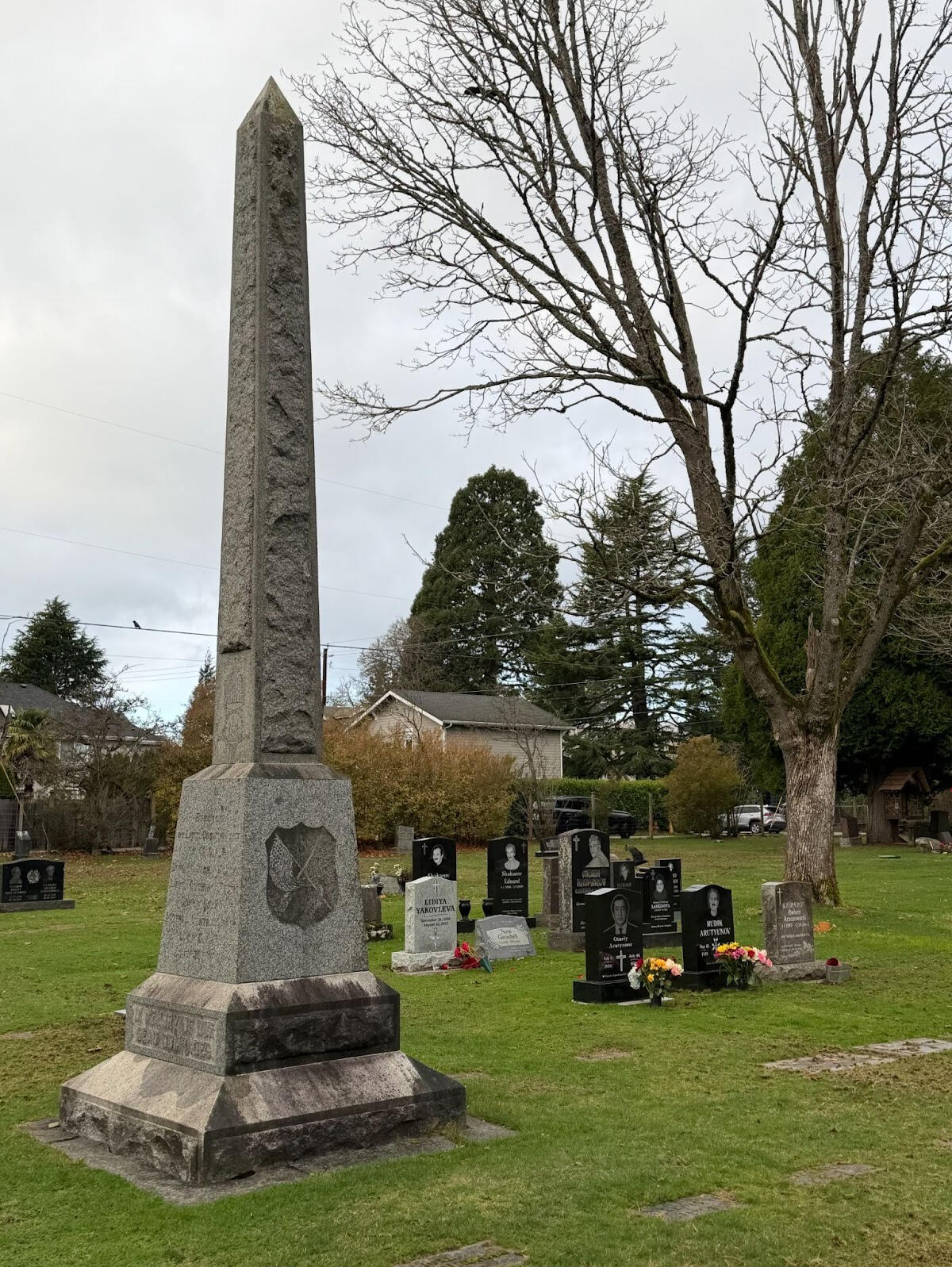 Crown Hill Cemetery, founded in 1903, stands as one of Seattle’s oldest community burial grounds and the earliest landmark of what is now the Crown Hill neighborhood. Long before houses, paved streets, or commercial development appeared, the cemetery occupied nearly ten acres of heavily forested land north of Ballard. Its presence predates most surrounding homes and even the neighborhood’s name, which was derived directly from the cemetery itself—underscoring its foundational role in the area’s history.At the turn of the twentieth century, Ballard was a booming industrial town known as the “Shingle Capital of the World,” with a population of more than 10,000 residents by 1900 and dozens of mills operating along the waterfront. As Ballard expanded rapidly, the need for additional burial space became urgent. In September 1902, a cemetery association was formed, land was purchased, and clearing began. A road was extended north from Ballard to serve the new burial ground. By 1903, half of the land had been cleared, and the first interments took place, marking the official founding of Crown Hill Cemetery.Crown Hill’s early years coincided with significant changes in Seattle’s burial landscape. In 1907, approximately two dozen bodies were moved to Crown Hill from the nearby Greenwood Cemetery (formerly Woodland Cemetery), which had been established in 1891 by pioneer David T. Denny and later sold for residential development. This transfer reinforced Crown Hill’s role as Ballard’s primary community cemetery. From the beginning, it served residents of modest means as well as prominent local figures, reflecting the social fabric of a working waterfront town.The cemetery bears witness to major historic events. Victims of the 1918 Spanish influenza pandemic, including many infants and children, are buried there, a poignant reminder of early twentieth-century public health crises. In 1919, a fire destroyed a building and many cemetery records, leaving lasting gaps in documentation. Despite these losses, Crown Hill continued to evolve. In 1923, the cemetery was sold to Arthur and Louanna Marshall, who were also involved with Evergreen Washelli. Under their ownership, beautification efforts expanded, plantings were added, and a perpetual care section was established. In 1924, the grounds were replatted, removing some original roads and simplifying the layout to provide more burial space and a less formal, parish-style character that remains today.Crown Hill Cemetery is notable for its diversity and inclusivity. It is non-denominational and has always been open to people of all faiths or none. Although Ballard was predominantly Scandinavian, especially Norwegian, the cemetery reflects Seattle’s broader immigrant history. As one moves away from the oldest Scandinavian sections, markers representing Russian, Japanese, Chinese, Eastern European, and other communities appear, often clustered together. These graves, many modest and unadorned, reflect immigrant laborers, boarding-house residents, and families who contributed to Seattle’s growth but were often marginalized in life.The cemetery also serves as an important veterans’ memorial landscape. It contains the graves of at least 25 Civil War veterans—Union and Confederate—including soldiers, sailors, and even a Union Army nurse. Later generations of veterans from the Spanish-American War, World Wars I and II, Korea, and Vietnam are also interred there. Memorials within the grounds include a 1909 monument honoring the Grand Army of the Republic and other commemorations marking maritime tragedies and family legacies.